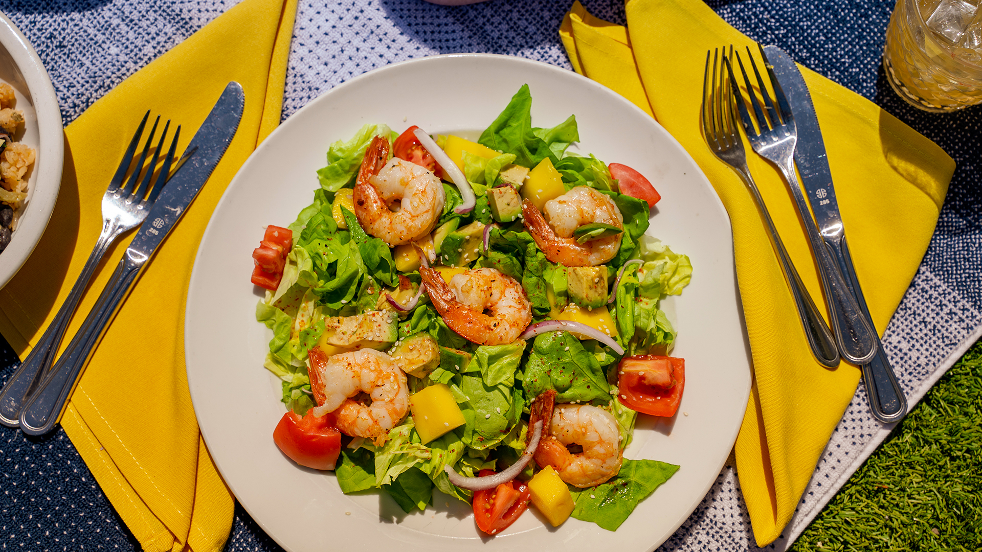 I art directed the shoot around that narrative. Casting, wardrobe, and the convertible itself were chosen to feel natural, not staged. The color palette stayed vibrant to match the energy of the food. The food styling stayed tactile: chips, guac topped with pomegranate, brightly-plated entrées, sweating glasses of agua fresca, all shot in the scene rather than studio. Branded catering bags and boxes stayed in frame so the commercial hook never got lost in the story.