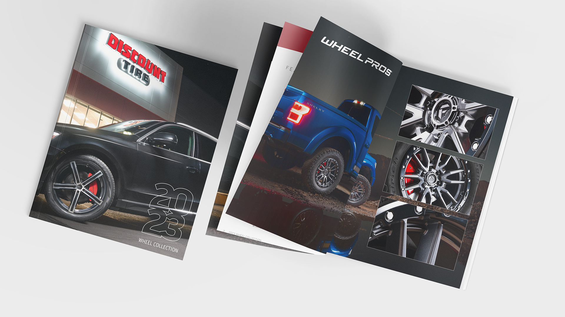I set a creative standard that ran across every surface: product as hero, type doing the heavy lifting, and leaning into the bold Discount Tire color palette. Fresh creative spread between engaging content creation for social that increased engagement and reach to print assets that felt premium with a velvet touch like the wheel catalog and annual report.